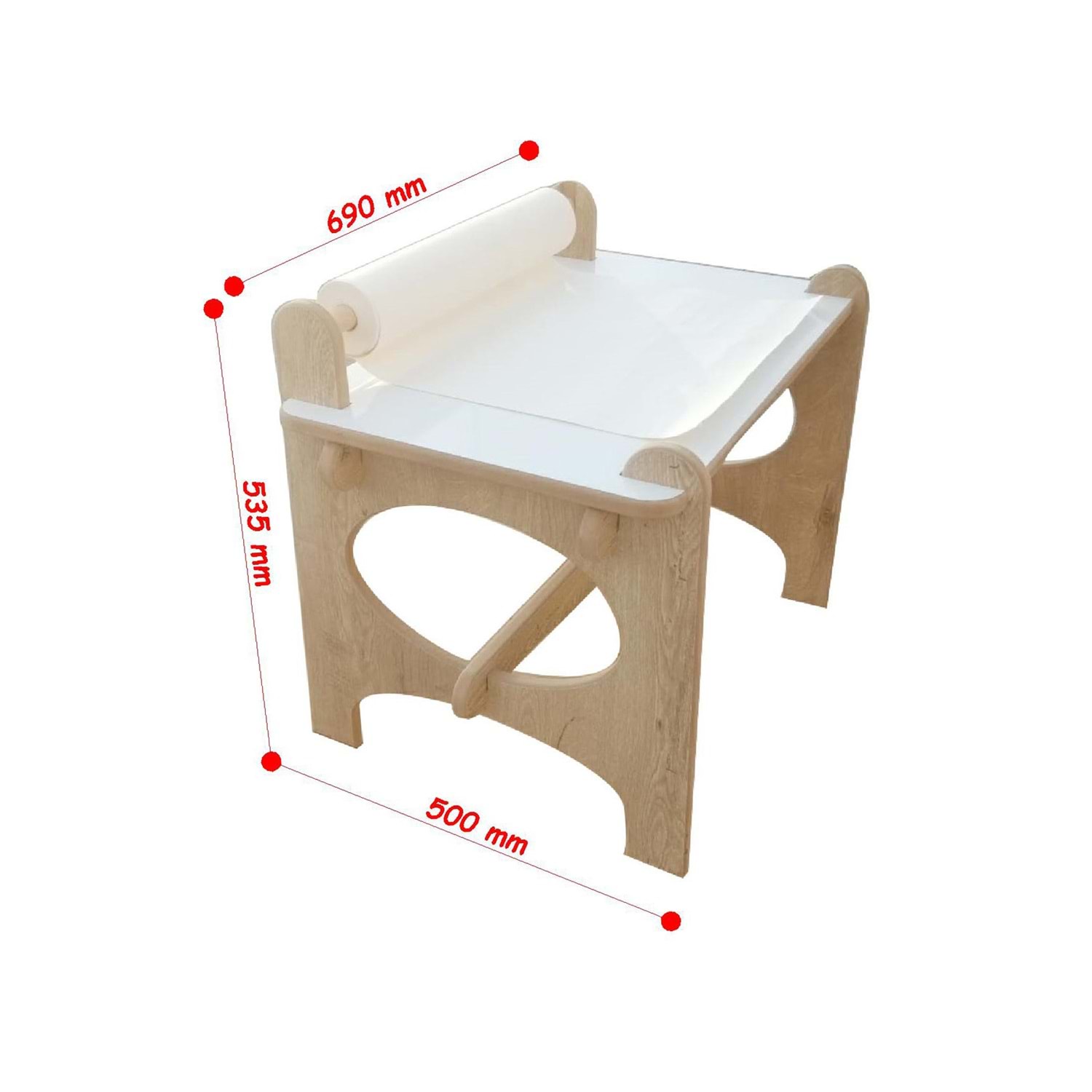 Ürün Özellikleri: 1. sınıf MDF malzemeden üretilmiştir. Yüzeyi Yaz-Sil özelliklidir. Çarpma ve yaralanma gibi durumlara karşı, sivri olan köşe kısımları yuvarlanmıştır. Su ile teması uygun değildir. Anti kansorejen ve anti bakteriyel malzeme kullanılmıştır. Güvenle kullanabileceğiniz, çevre ve çocuk sağlığına uygun malzemeler ile üretilmiştir. Ağacın doğası gereği budak vb. izler olabilir. Ağaç dokularına göre renk farklılıkları gösterebilir. Ürün fotoğrafında görünen rulo kağıt görsel amaçlı olup, ürüne dahil değildir.