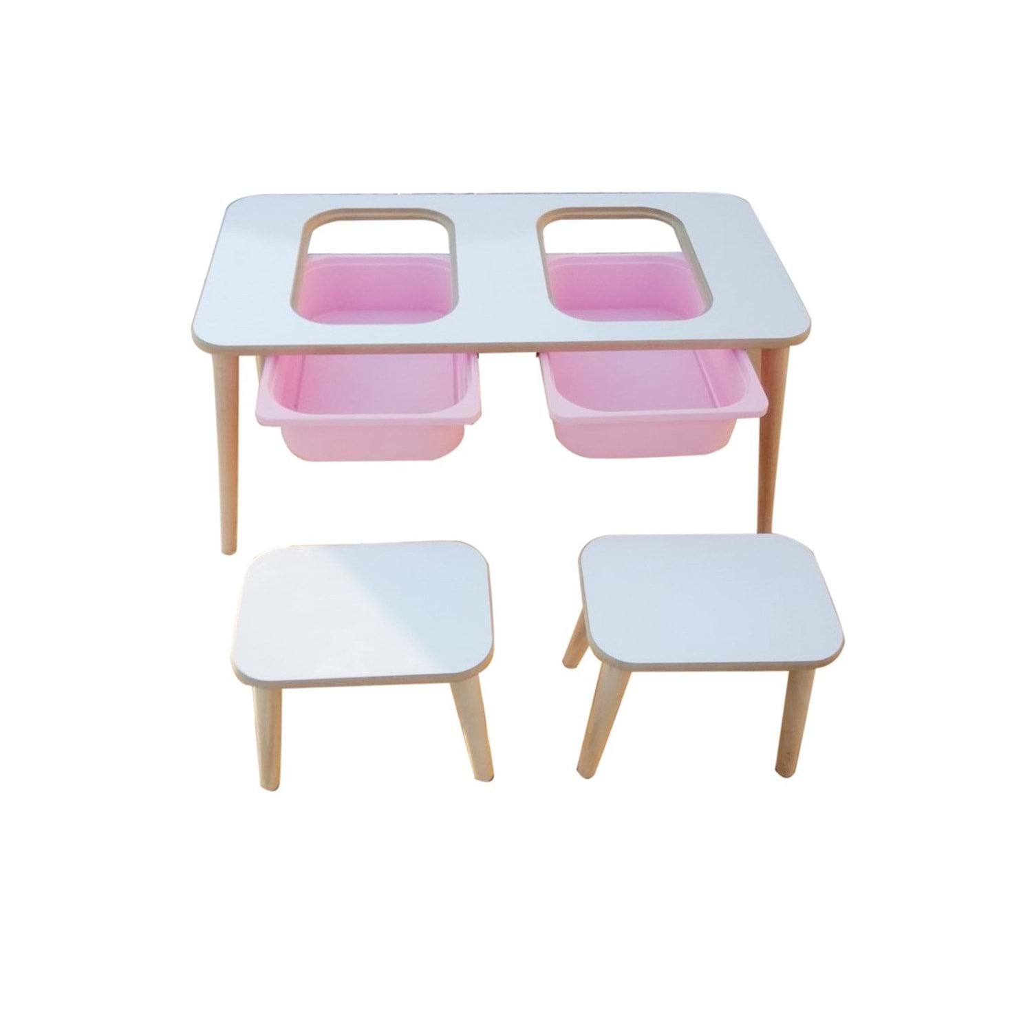 Paket içeriği: Masa: 1 Adet Tabure: 2 Adet Plastik kova: 2 Adet