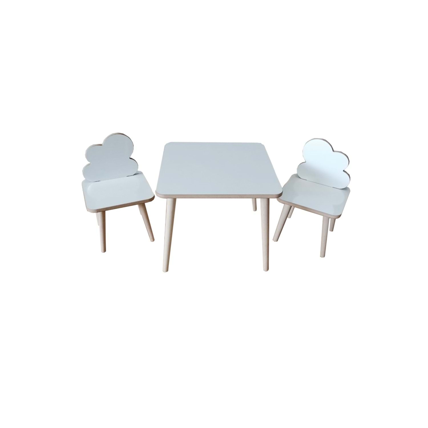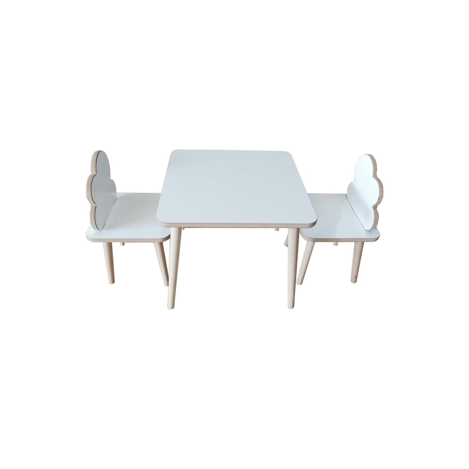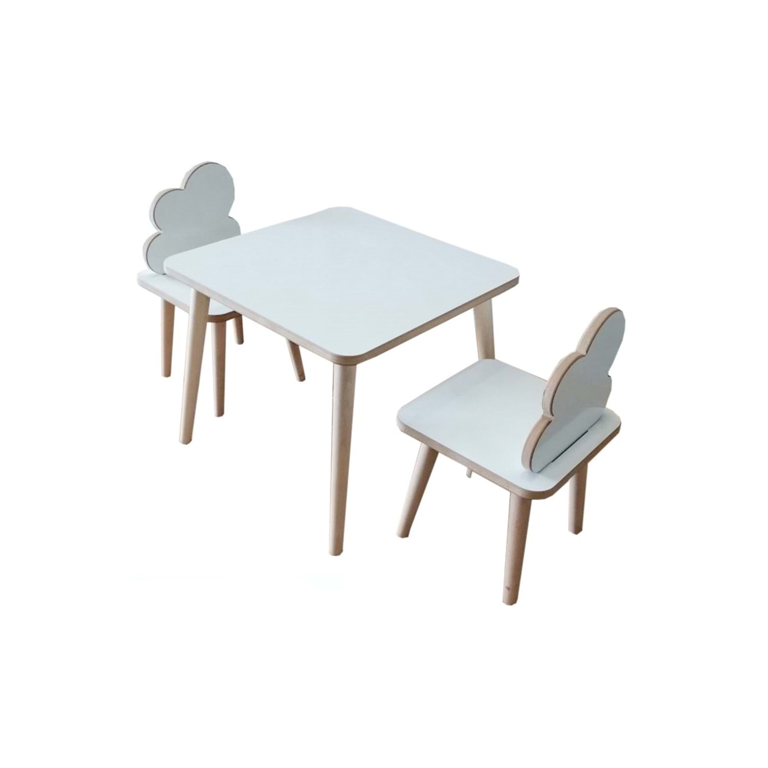 Damla Toys Yaz-sil Yüzey Bulut Figürlü Ahşap Çocuk Aktivite Oyun Masa Sandalye Takımı - 1 Masa 2 Sandalye